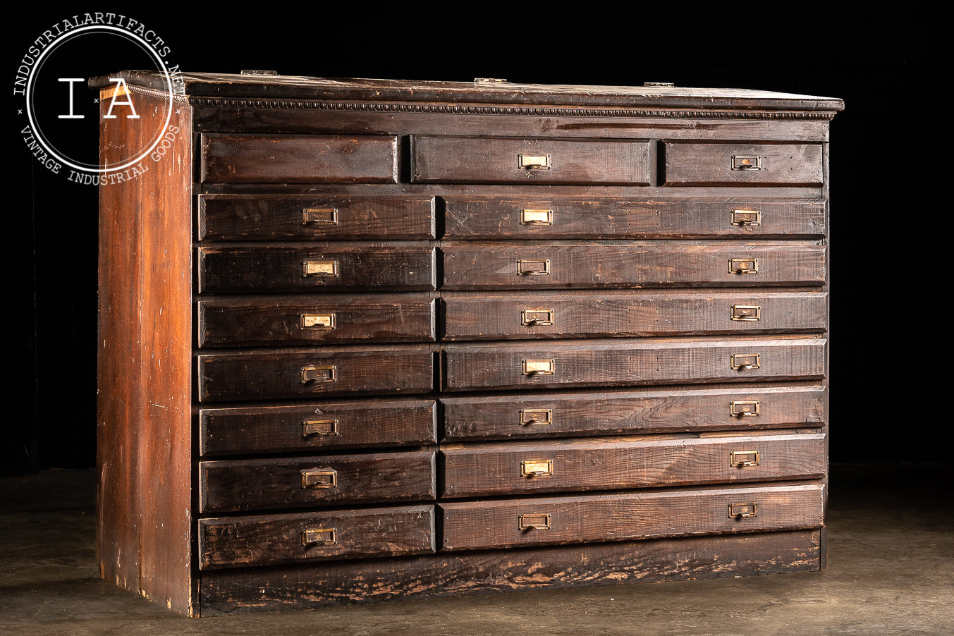 Oak 1900 Antique 13 Drawer Map Chest, Drawing or Document File Cabinet